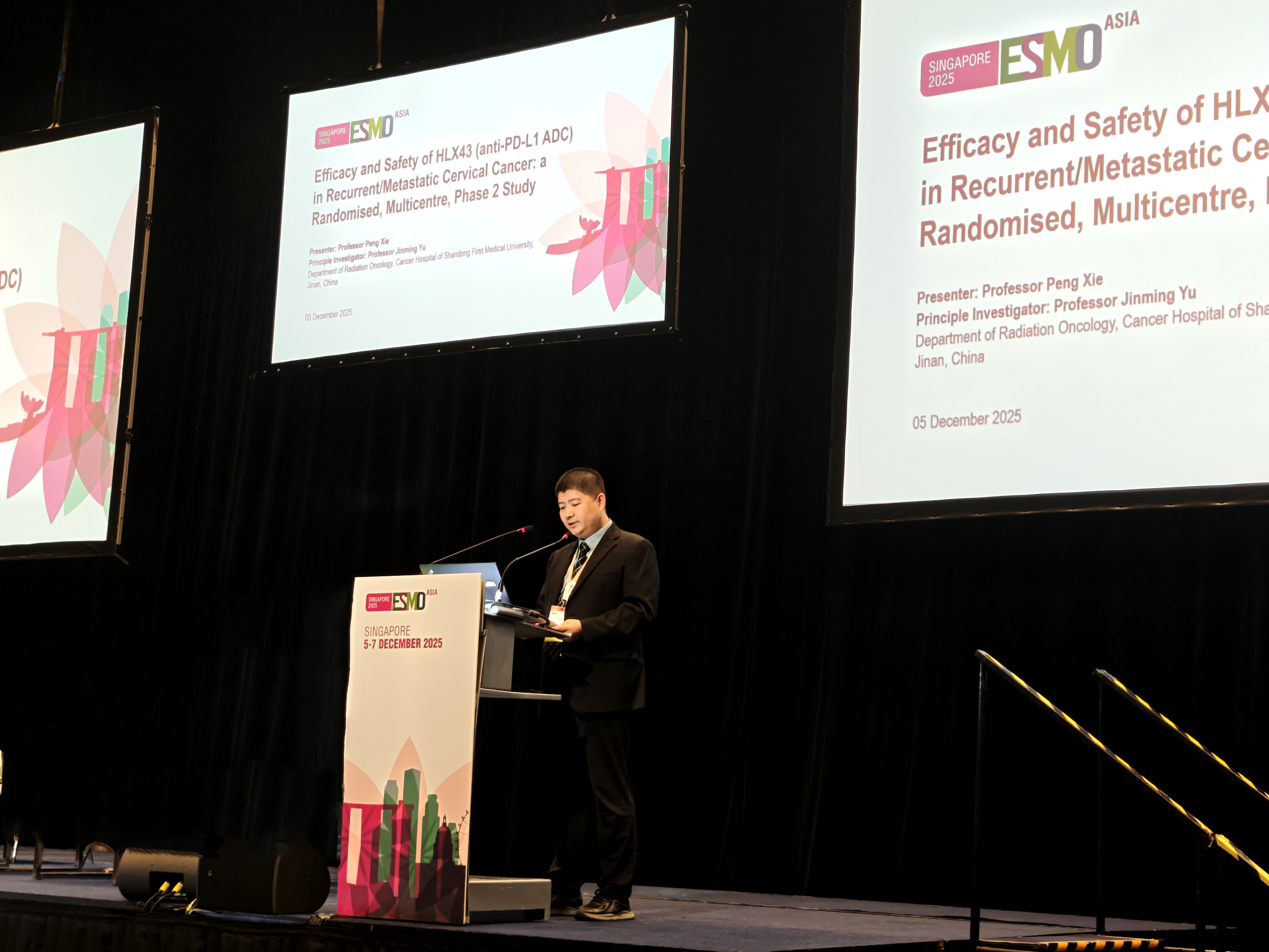 2025年12月5日,在2025年欧洲肿瘤内科学会亚洲年会(ESMO Asia)上,复宏汉霖PD-L1 ADC HLX43用于复发/转移性宫颈癌的II期临床研究数据以优选论文口头报告形式首发亮相,展现了令人鼓舞的初步疗效,继非小细胞肺癌、胸腺癌之后,再度印证了该产品在实体瘤领域的广谱治疗潜力。