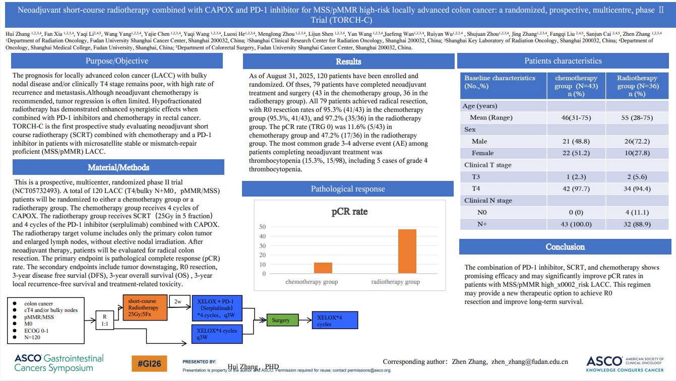 论文题目:新辅助短程放疗联合 CAPOX 方案与 PD-1 抑制剂用于 MSS/pMMR 高危局部晚期结肠癌:一项随机、前瞻性、多中心 Ⅱ 期试验(TORCH-C)