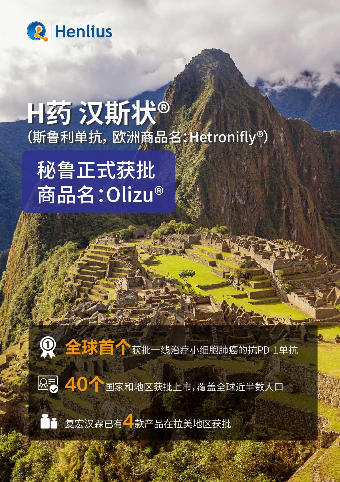 復宏漢霖(2696.HK)宣佈,公司自主研發的抗PD-1單抗 H藥 漢斯狀®(斯魯利單抗,歐洲商品名:Hetronifly®)正式獲得秘魯藥監局(Dirección General de Medicamentos, Insumos y Drogas, 「DIGEMID」)批准上市,用於廣泛期小細胞肺癌(ES-SCLC)的一線治療。此次獲批標誌着H藥成為拉美地區首個且唯一獲批該適應症的抗PD-1單抗。H藥在秘魯的本地商業化由合作夥伴Abbott負責,商品名為Olizu®。