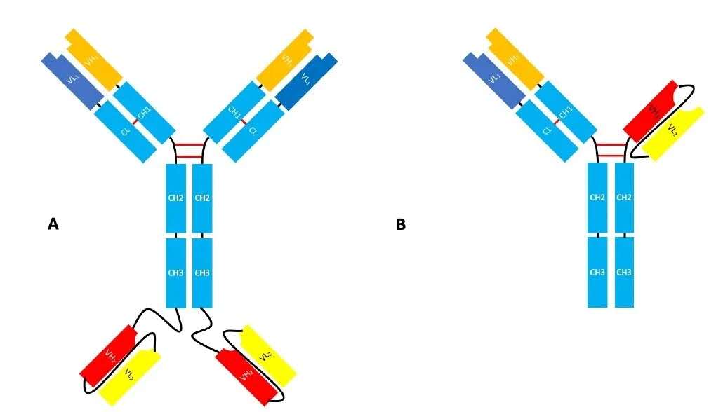 靶点组合确立后,在双抗的设计中,针对两个目标靶点分别构建具有良好特异性的结合区域是保证双抗能够具备理想作用效果的关键。针对这一挑战,两种抗体结构单元--单链可变区(scFv)与重链可变区单域抗体(VHH)能够发挥核心作用,成为双抗构建中的“基石”。
