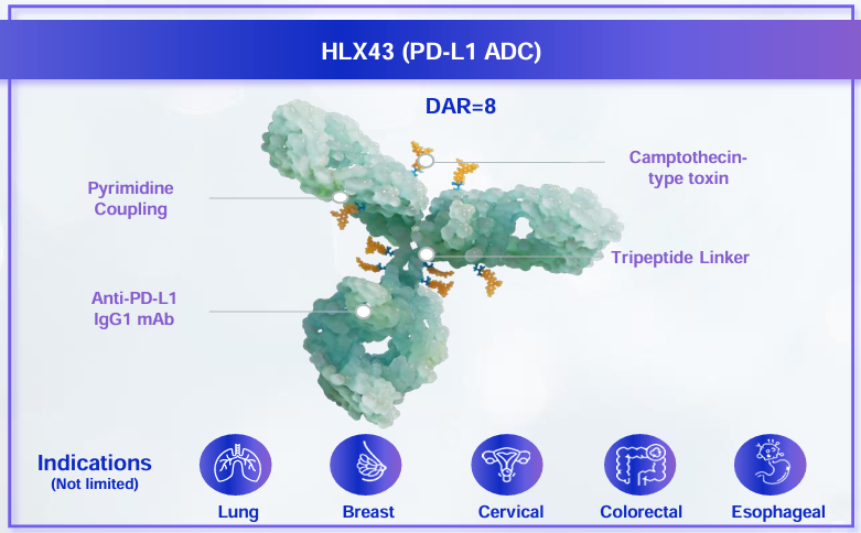 目前,复宏汉霖正全力推进HLX43的临床开发进程,在全球入组超过700例患者。其中NSCLC患者占比超过60%(400例),包括一项针对NSCLC的国际多中心II期临床研究(HLX43-NSCLC201)正在中、美、日、澳等地同步开展。此外,公司已累计开展十余项HLX43单药或联合其他产品的临床研究,广泛覆盖宫颈癌(CC)、食管鳞癌(ESCC)、头颈鳞癌(HNSCC)、鼻咽癌(NPC)、结直肠癌(mCRC)、胃癌/胃食管交界部(G/GEJ)癌、胰腺导管腺癌(PDAC)、乳腺癌(BC)等,持续探索和挖掘HLX43在实体瘤中的广谱治疗潜力,其在CC、ESCC、NPC、HNSCC等肿瘤中的概念验证数据已在/将在ESMO Asia、ASCO GI、ASCO、ESMO等大会上陆续读出。单药之外,基于HLX43展现出的IO疗效,公司积极探索HLX43与其他多元分子如公司自研创新抗EGFR单抗HLX07、H药 汉斯状®(斯鲁利单抗,抗PD-1单抗)的联合治疗潜力,不断挖掘和最大化该产品在临床中的应用价值。